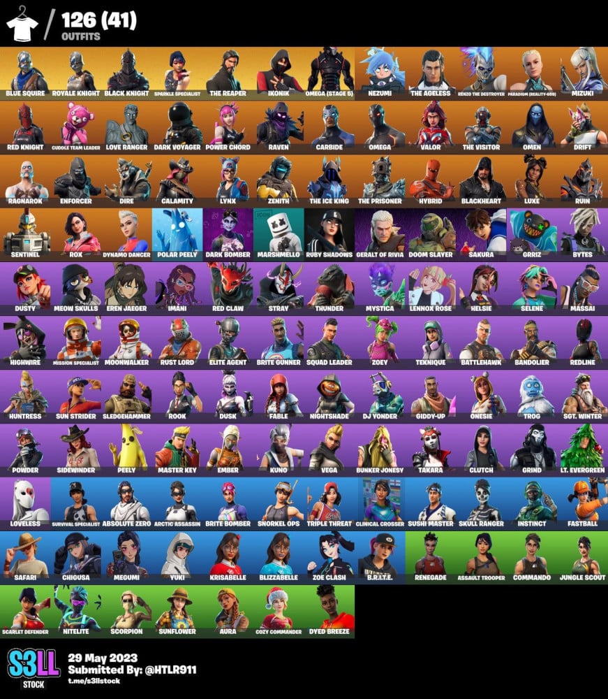 حساب فورت 130 سكن شيطون وايكونك والسيزن الثالث واوميقا ورقصات نادره وبنر الباص اساسي مع الايدي